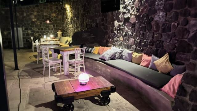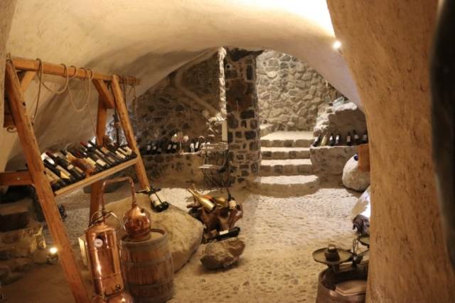 ### Caves1. **Cave 25 m²:**- Built with the gunite method, for maximum safety and foundation, white finish, closes with anelectric roller.- Includes a stone barbecue and wood oven, outdoor table and benches made of stone, built-inbed, and wood-burning stove.- Smart lighting.2. **Cave 100 m²:**- Built with the gunite method, for maximum safety and foundation.- Located 10 steps below the surface.- Features a cellar, corridors, 3 rooms, two entrances with stairs.- Includes a hand-crafted huge wooden table with a stone base and wooden lighting for candlelighting.- Both caves have smart lighting and electrical installation, and Ethernet. The hydraulicinstallation is externally located in the barbecue area.### Surrounding Area and Plants- **Plants & trees planted 8 years ago. A unique space in Santorini with greenery (10 largelavenders / oregano / thyme / 20 large immortelles / 30 aloe veras / 5 yuccas 3 meters high / 3pines 8 meters high / 7 large Parkinsonias / 5 Acacia Constantinople / 1 willow / 3 large palms / 2angelonia / 20+ shrubs / 1 large mastic tree / 10 pseudopiper plants / 1 large floweringplumbago / 1 bay tree / 3 jasmine plants / 10 bougainvilleas of all colors / 3 mulberries / 10productive olive trees / 10 productive pomegranate trees / 15 mature vines of the rare variety"Mavrotragano" / 25 large oleanders of all colors / 2 8-meter Araucarias / hybrid lawn that growsin shade and is irrigated with salt water, very resistant, 500 m² / 10 metal sidings / various types ofcacti / various types of flowers / large variety of plants / 2 large ficus / 1 carob tree / 1 tamarisk / 2ancient olive trees from the Peloponnese, one 1,100 years old and the other 700 years old / 10productive fig trees of all varieties / 1 bushy oak / 1 oak tree / 50 m² of broom / various types ofbulbs that bloom once a year / 2 large Easter lilies / 4 jasmine plants / including over 50 potsbesides the stone ones)**---